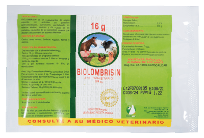 Bovinos y Equinos: 20g / 25kg de peso.